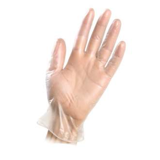 Guanto monouso sintetico in polivinilcloruro ambidestro con bordino. Senza polvere.
