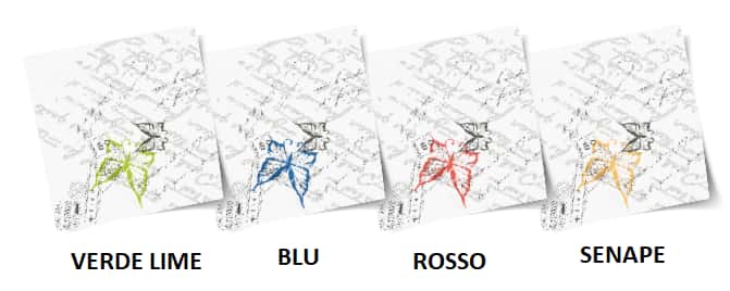 Verde lime, Blu, Rosso, Senape