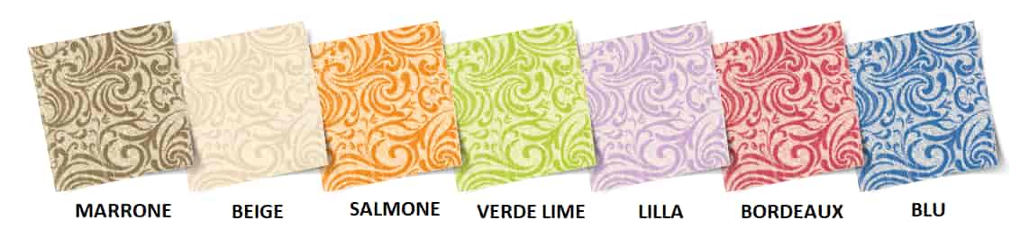 Marrone, Beige, Salmone, Verde lime, Lilla, Bordeaux, Blu